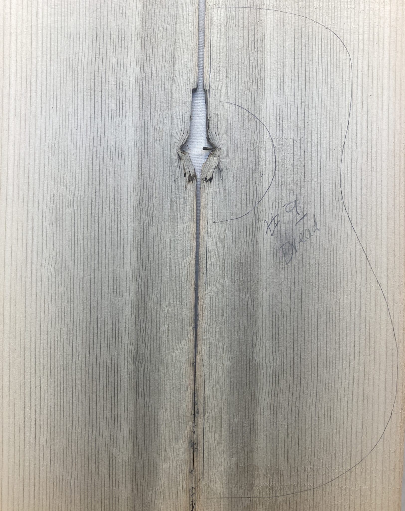 Dreadnaught ???Most 2 pc bookset boards are cut??8.5+? x 23 but may or not pattern all of the width and length. These tops will pattern [per half]??Lower bout 8?,??waist 5.25 , upper bout 5.75? x 19.75-20? inches long which is the range of the 4 dreadnought gtr patterns we have to go by. If your measurements crowd these dimensions, it would be wise to let us know what your doing in the comments box of the order, during checkout; or best,??contact us before ordering.